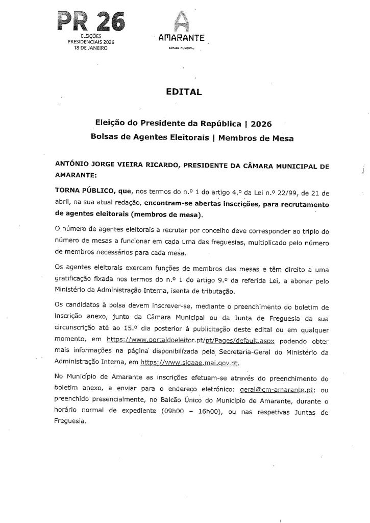 • Inscrições para membros das mesas de voto nas Eleições Presidenciais 2026